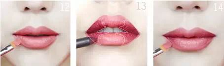 STEP14:用唇刷在嘴唇上下部分均匀晕染下。