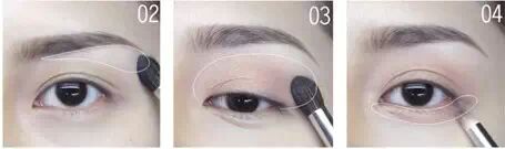 STEP3:03图中位置为眼窝位置,要用珠光浅大地色眼影均匀涂抹,作为眼妆的底妆。