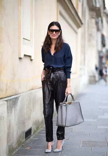 合身的高腰裤,可以提升腰节线、强调腰的轮廓,显得腿更长;若是高腰阔腿裤,不仅能修饰不完美的腿型,还能拉长上身和下身之间的比例。