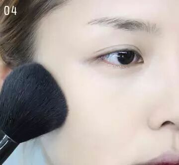 STEP4:大号的散粉刷蘸取适量的定妆散粉轻扫面部定妆。