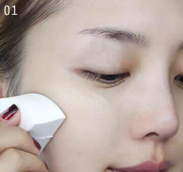 STEP1:将bb霜适量点擦在面部,然后用干净的化妆海绵将bb霜一点点的轻拍晕染。