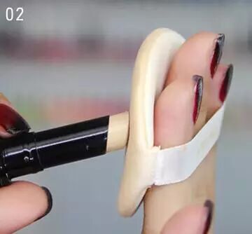 STEP2:将眼部遮瑕产品在粉扑上涂抹几下。