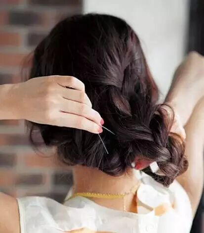 step3:将发辫内扣后用发夹固定,再戴上帽子即可。