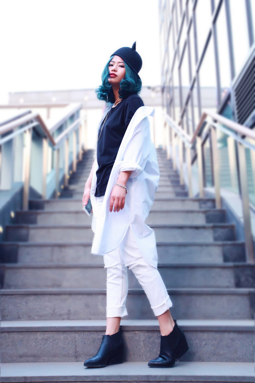 黑白层次的搭配,同样能够赋予这个春日跳跃而明朗的质感。要想黑白穿得有型,重点在于单品简约的线条,宽松与修身的组合以及酷酷的眼神!当然,精致又俏皮的细节点缀也必不可少哦!