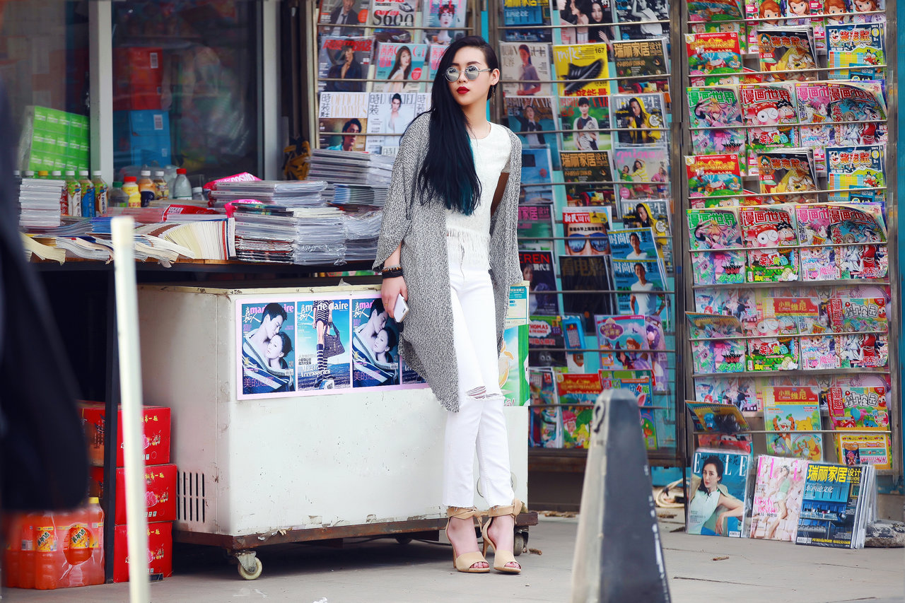 休闲舒适的T恤搭配休闲破洞牛仔,纯白色调令心情都清新了起来!乍暖还寒时候,雪花灰罩衫不仅是造型加分项,也是抵御早晚凉意的好选择!