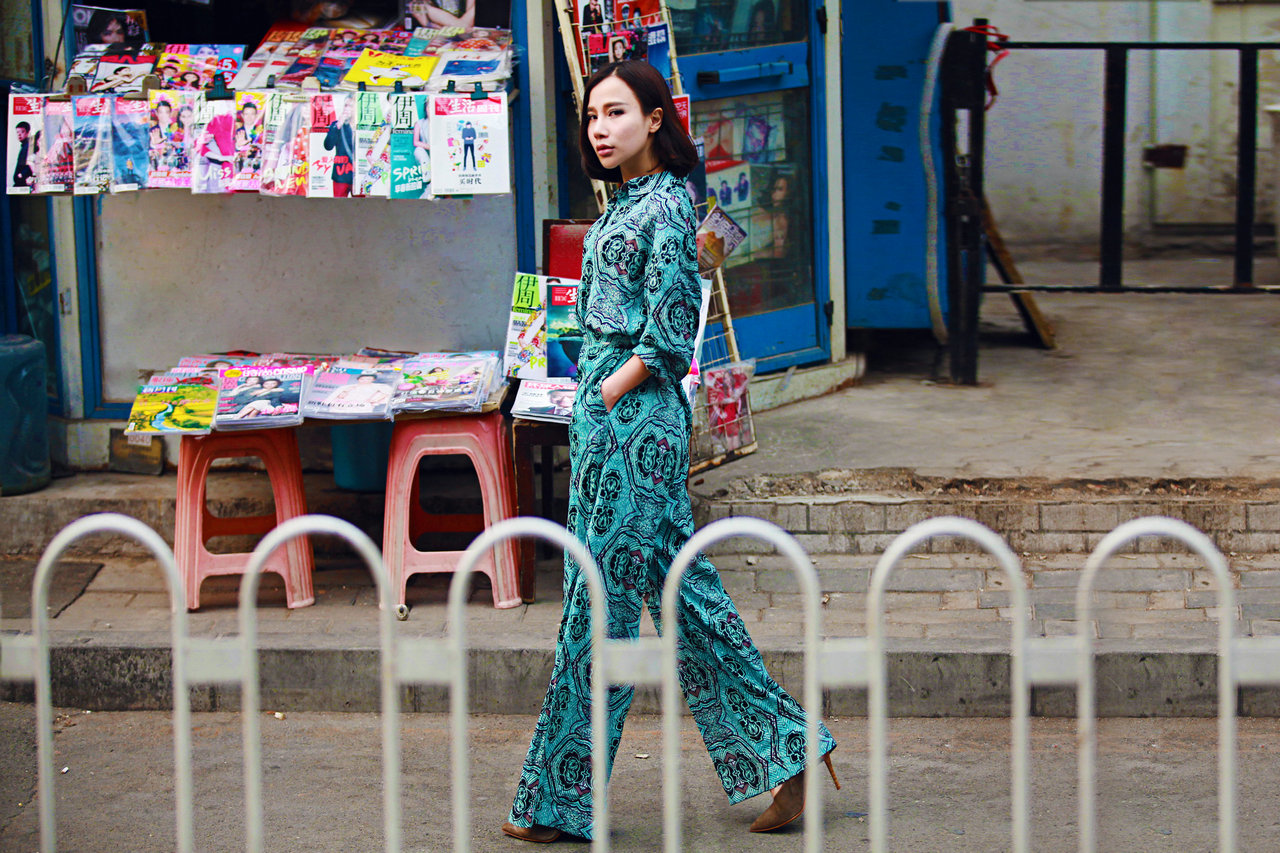春日印花成套穿着,别有一番韵味。大V领纯色衬衫的搭配大方又性感,简洁的鞋款则给整体造型带来了更多现代气息!
