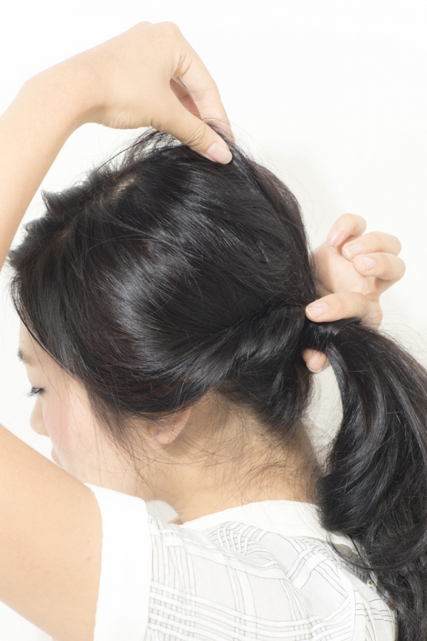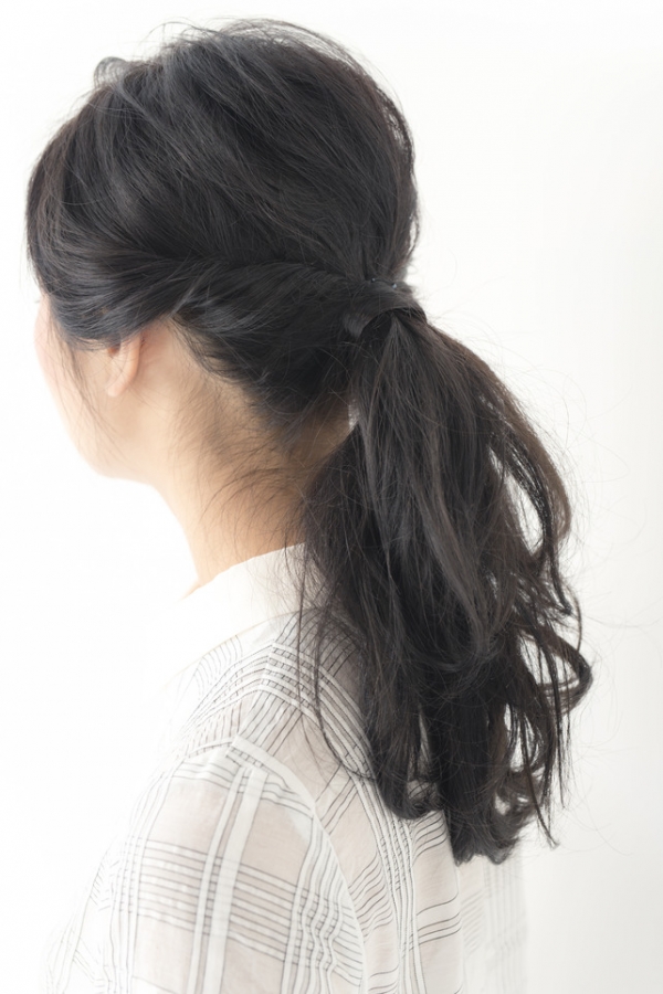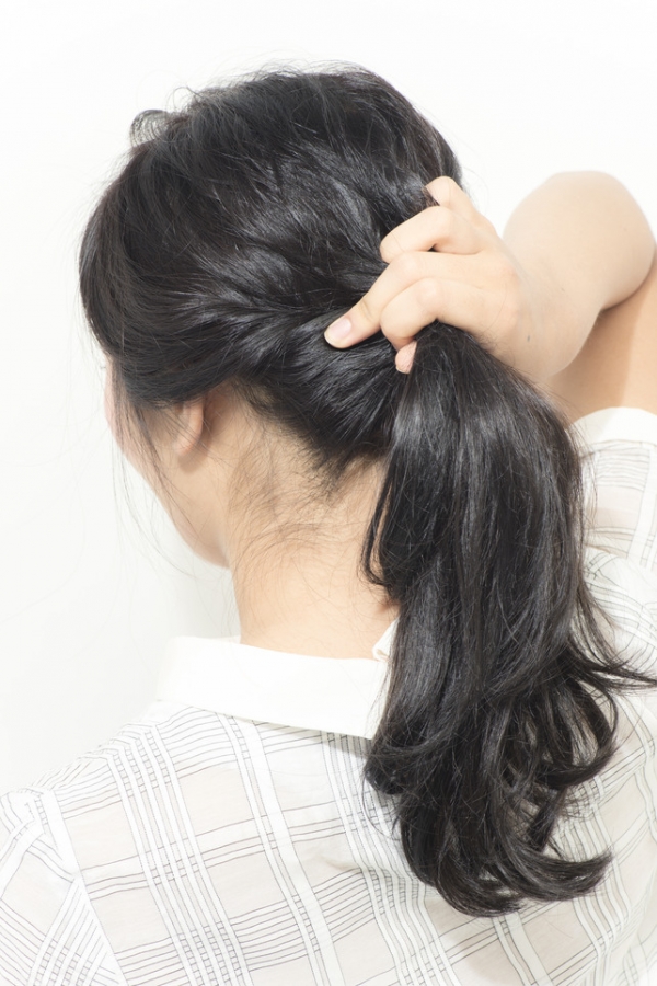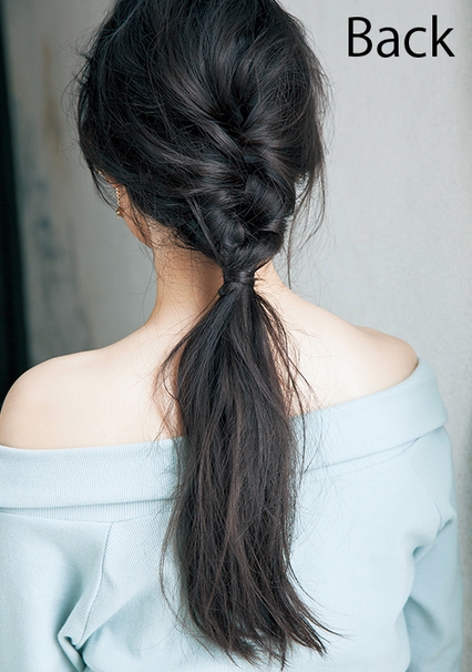 低马尾辫也非常简单,只是多了一个绑辫子的步骤。而且辫子也不需要太长。