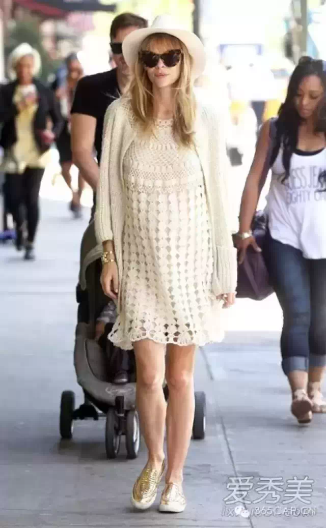 米色礼帽很百搭,时髦而俏皮,和T恤配短裤的休闲装扮搭配的正好,让简单的装扮显得不那么单调。