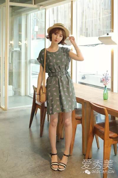 清新怡人的绿色印花连衣裙,轻盈的雪纺材质,柔软飘逸,更显灵动和柔美,很有淑女味道,配经典的小草帽,好看又实用。