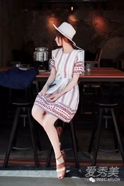 白色印花连衣裙的图案精致个性,充满了艺术气息,红色的印花增添明艳感,款式简洁大方,穿出清新时尚,搭配白色宽檐帽,增添淑女风情。