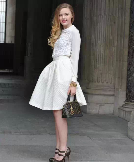 简约的衬衫知性大气配裙子也很美有木有?花费大量的时间去精力来打扮,倒不如备上一件简洁的衬衫,搭配小白裙穿出神般的清爽气质。
