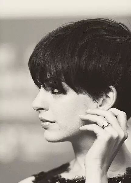 从正面看,安妮的脸型是有棱角的,但不是很明显,加上五官好看,所以留超短发也很好看。方脸的妹纸,如果想修饰脸型,可以参考安妮的中长发造型哦~