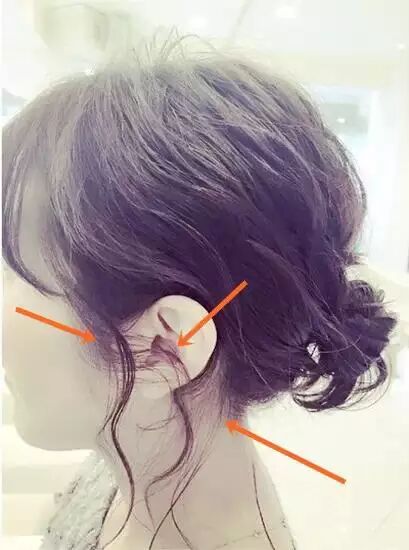 头发放下来也不是随便放,不管要单边塞耳后还是把头发两边都塞耳后,记得要预留垂坠发,才能有着轻盈感。