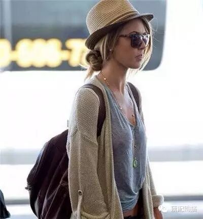 窄边爵士帽搭配低位置绑上的发髻展现良好平衡。两侧随性垂落的发束休闲自在。
