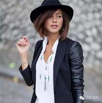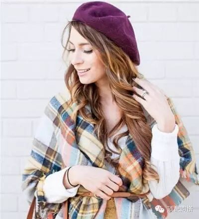 中长直发是最好搭配帽子的发型,留一些刘海,一部分头发在肩前,一部分位于肩后,随意一些,蓬松一些。