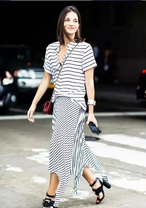最后来说说印花长裙。虽然印花装都容易产生“看厌”的风险,但不可置否,一件简单的上衣与之搭配——印花、条纹、波点,一种就已足够精彩!