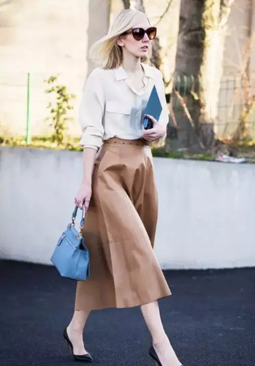 谁说夏日不能穿“皮裙”?今年中长裙的新趋势之一,便是皮革质地了。