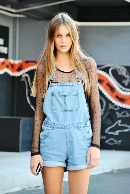 平时必须内搭吊带/抹胸的透视上衣,现在靠背带短裤也能直接穿上身了!
