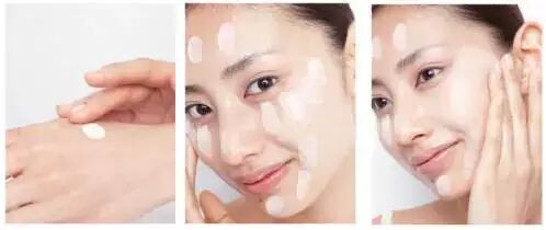 选一款白皙轻透的粉底液,用粉扑沾取,先用大块涂抹的方式涂脸颊,下巴,额头和鼻子,再用轻轻按压的方式修饰鼻翼两侧,眼睑,和接缝处。一边轻拍一边按压,让粉更服帖。