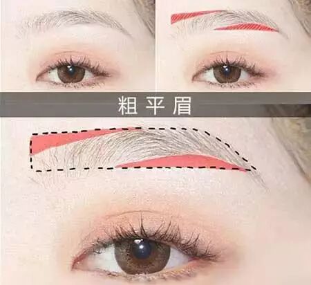 补眉头,填平眉毛角度、不强调眉峰都是平眉基本守则,要做出自然感,切记眉头要淡一些,做出渐层感。眉色最好比发色浅一些,不然就蜡笔小新了~