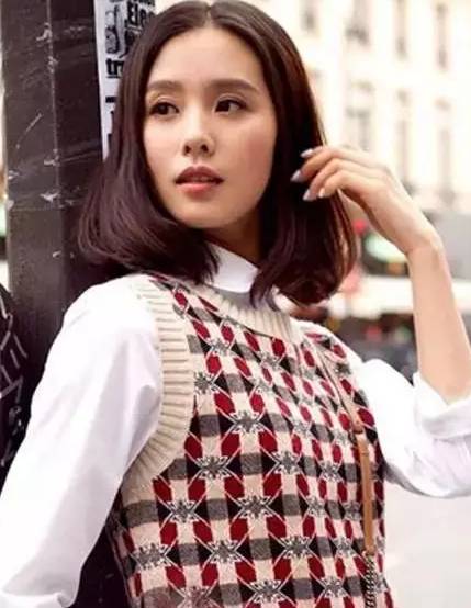 中分系的中短发发型时尚优雅,尽显轻熟女范,毛衣衬衫装,比较文艺。