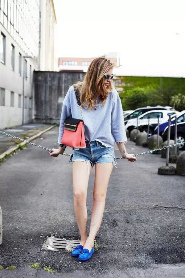 近年来最流行的就是破洞+挽边的牛仔短裤,而爱折腾的博主、明星们,也不厌其烦地亲身示范了N种美貌的幺蛾子穿法。