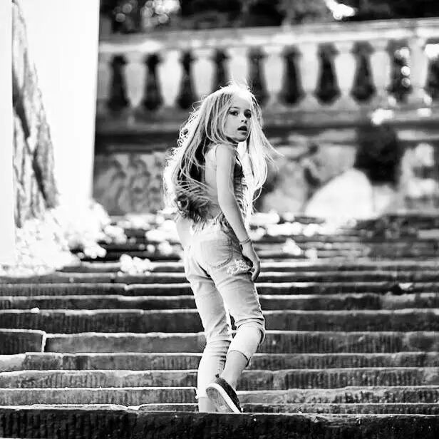 Kristina 之所以能够在时尚圈崭露头角,也是有一定先天优势的。她妈妈本身就是一个名模,从小耳濡目染就学会了如何摆Pose,如何更上镜。所以在给时尚品牌拍广告的时候,这个小萝莉一点也不怯场,反而随意自然,超级有范儿。