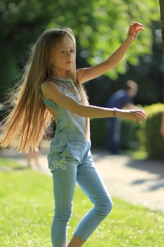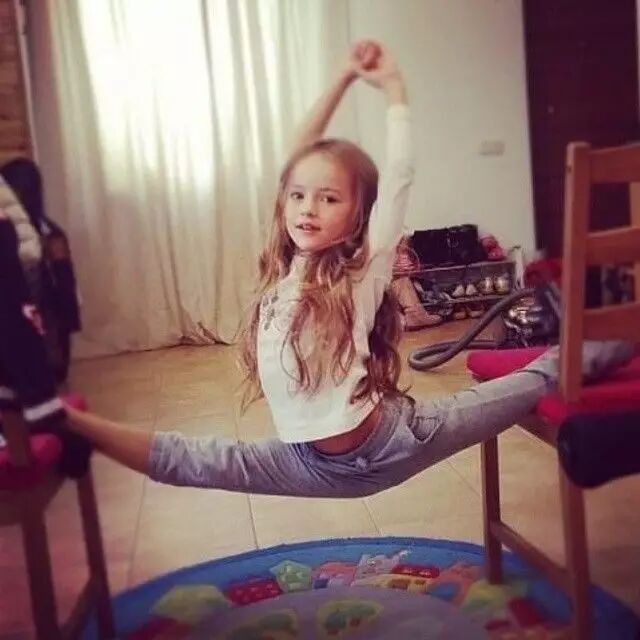 现在10岁的Kristina 已经出落的亭亭玉立,较之同岁的小女孩多了几分自信成熟,一方面继承了俄罗斯人血统里的高挑,另一方面长期的体操训练也让她才艺双全,腿长颜高,已经逐渐由萌萝莉向靓女神跨出一大步。