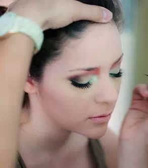 眼影的颜色要避免太过饱和的颜色,如蓝、紫、绿等,而棕色系的眼影,如古铜色、烟灰色、大地色等就比较适合了,如果选择有金属光泽的眼影,更能弱化眼袋。