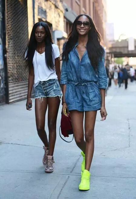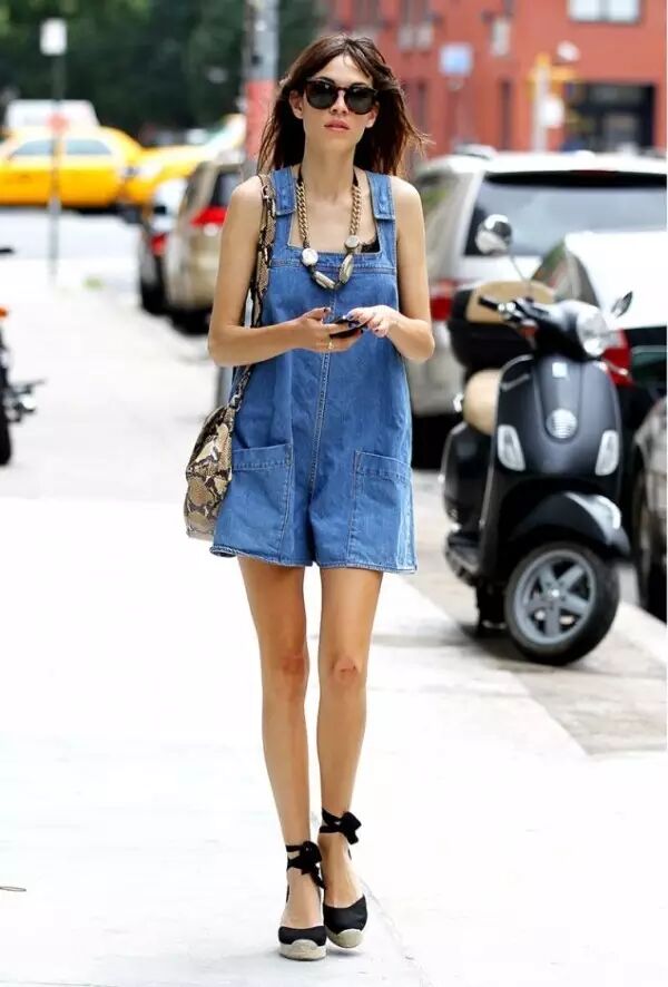 连身裤装不是成熟女孩的专利,同时也能穿得很年轻有朝气,选择牛仔布料的牛仔短裤,就能穿出学生的青涩感。