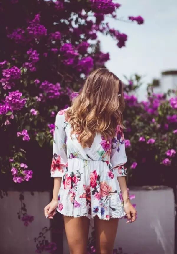 除了素色的连身裤装外,有花朵图样的款式也非常受到欢迎。