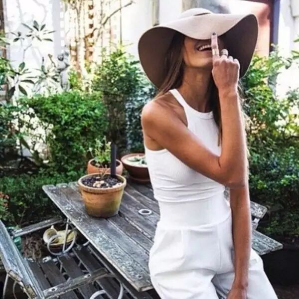 戴上大大的遮阳帽,营造出度假风。