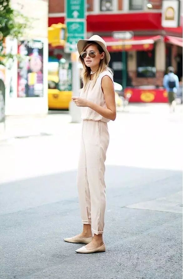 没有穿过连身裤装的女孩,可以先从基本款的素色开始尝试,选择最好搭的黑色、蓝色,并记得选择轻薄透气的材质。