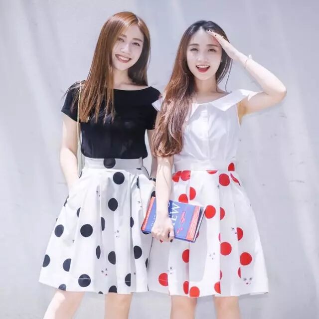 黑色的上衣搭配藕粉色的百褶裙,非常的清新自然;束腰的的百褶裙采用的是今年超级流行的欧根纱进口面料,不起皱,透气性好,穿着非常舒适。腰间蝴蝶结的设计,是画龙点睛之笔,为整套装扮成功减龄。