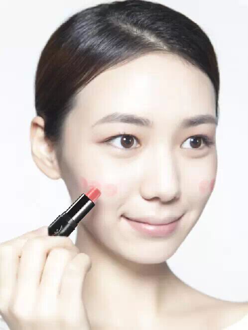 口红打造腮红不仅延展度强,而且妆效自然,并且口红打造的腮红还有光感妆之效果。