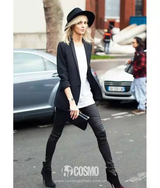 作为衣橱中必备单品,安雅·卢比可(Anja Rubik)可是把白色T恤穿出别样精彩哦~Anja身穿只有超模身材轻松HOLD住的黑色皮裤,白色T恤搭配黑色西装LOOK,干净利落。