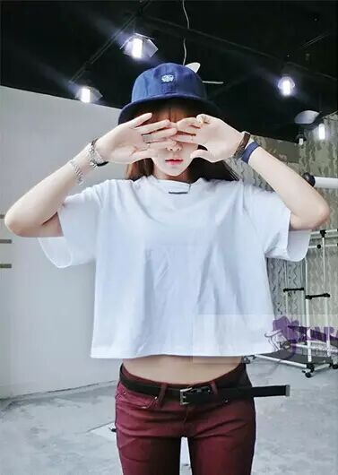 搭配技巧3、休闲渔夫帽搭配纯色短款t恤