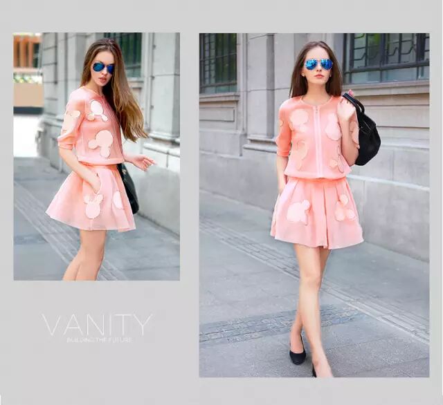 时尚经典米奇头像,每一个人都有一个公主梦,不分年龄,一件找回童心未泯的自己!甜美三件套装,半身裙采用裤裙设计,夏天穿短裙,保持时尚性感,又防走光,棒棒哒。
