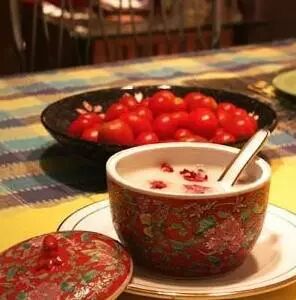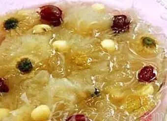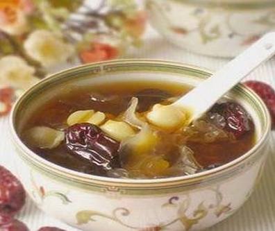 红枣莲子银耳汤,透明晶莹,浓甜味美,红白相间,香甜可口,是传统的营养滋补佳品;具有较强的健身功能;用银耳与大米煮粥,也是别具风味的营养佳品。