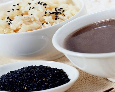 原料:选用芝麻50克,粳米100克,红糖适量。