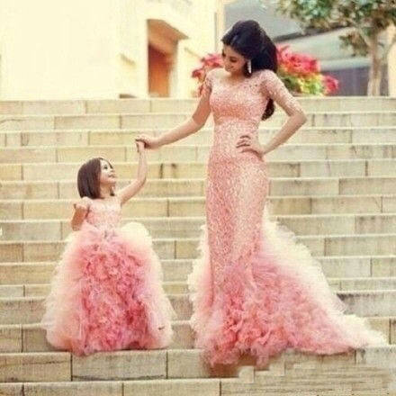 麻麻,你的裙子真漂亮,长大了我也要一条那么长的。