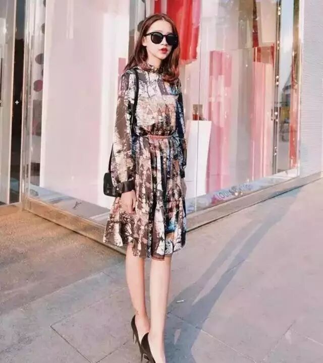 阳光绚丽的夏末秋初,印花的雪纺连衣裙是搭配率很高的一款单品,穿着可乖了,透着复古的独特气质,柔软的质感,舒适度很强,韩味十足气质减龄,秋季必备。