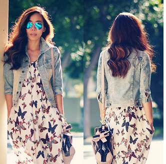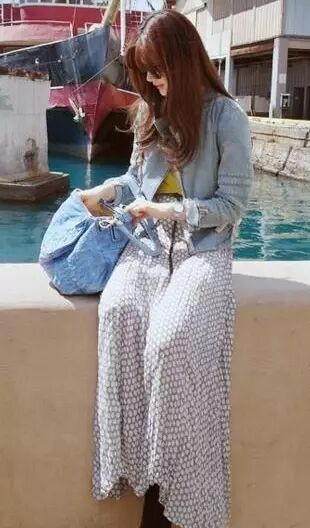 其次飘逸的长裙也非常显气质。秋天要到了,不要担心要跟轻薄的长裙说拜拜,无论是吊带,露背,抑或是抹胸长裙,只要一件牛仔外套,就可以抵御秋天微凉的寒气了,简单又好看。