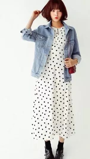 波点连衣裙很时尚很简约,是大部分女生都会喜欢的款式和设计,带有一些日韩风格,很百搭,宽松的版型也不挑剔身材,搭配上宽松款的牛仔外套会显得很有气质很时尚哦,清新养眼透露出小女生的感觉。