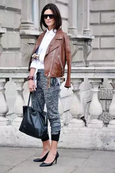首先说下Jogger Panrs,慢跑裤,被做成收脚的样子,最常见的样子是松紧腰带+松紧裤腿