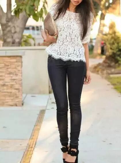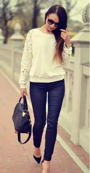黑色九分裤是非常基础的单品,和充满女性化、梦幻感的蕾丝、雪纺、华丽刺绣等可以很好的兼容,让人感觉不会太过甜腻。