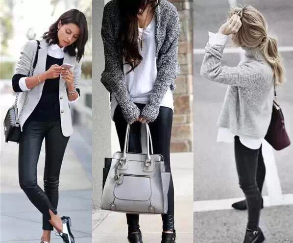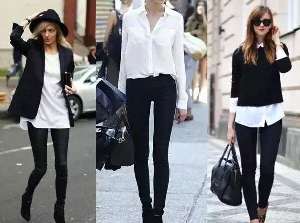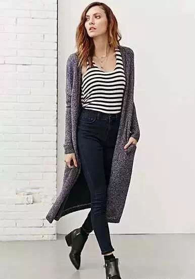 最后说一个现在这个季节最实用的穿搭,紧身的小黑裤搭配针织或雪纺面料中长款针织开衫,显瘦、遮肉、有气场!