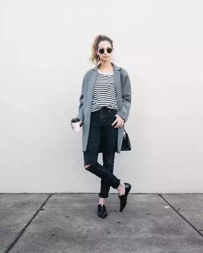 灰色作为黑色和白色之间的过渡色,这三者很适合搭配在一起。“黑+白+灰”的单品组合也是很多欧美博主最爱的搭配,能让色彩层次感也丰富细腻起来。