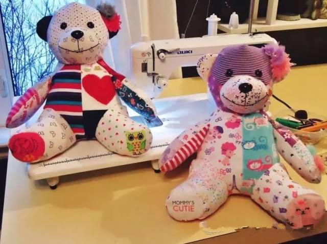 还有两个特殊的,拼布抱枕和拼布玩具小熊