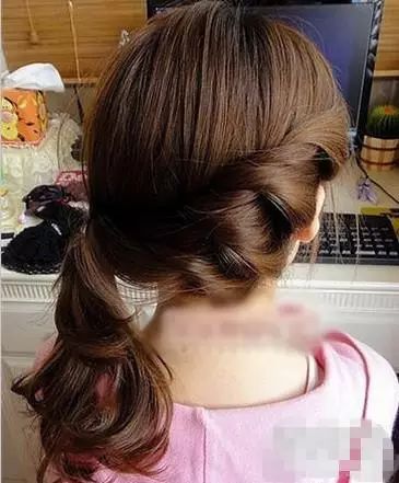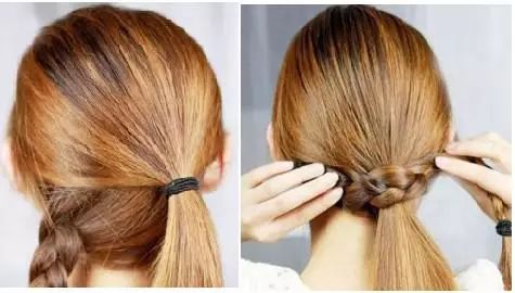步骤3:从马尾中拉出一束头发,绕着扎发处,隐藏橡皮筋,再用夹子固定好,完成!